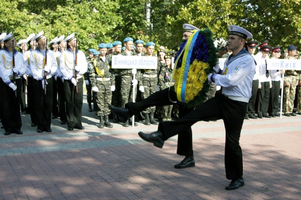 Церемония закрытия началась с торжественного построения команд и возложения цветов и венков к Вечному огню руководством города, народным депутатом Украины Вадимом Колесниченко, военным командованием, ветеранами Великой Отечественной войны, представителями общественности города.