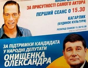 Знаменитый голливудский актер Жан-Клода Ван Дамм на минувших выходных был замечен в городе Кагарлык Киевской области, где активно агитировал за кандидата по одномандатному округу №93 от Партии регионов Александра Онищенко.
