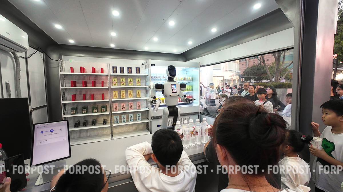 В торговом киоске меня ждал неожиданный сюрприз: вместо привычного продавца — робот, спокойно предлагающий купить питьевую воду. Сначала это кажется чем-то необычным, но уже через несколько минут понимаешь: для Китая это часть повседневной жизни.