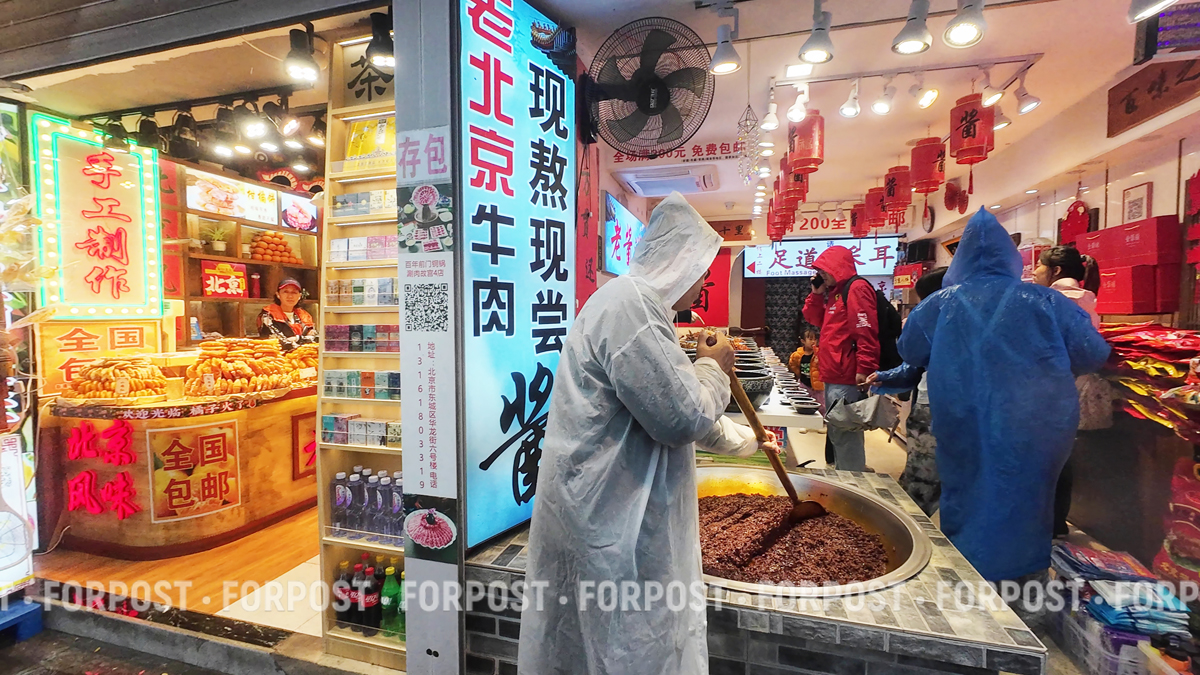 С наступлением вечера Ванфуцзин преображается: загораются огни, появляется аромат уличной еды, которая буквально притягивает и не оставляет шанса пройти мимо.