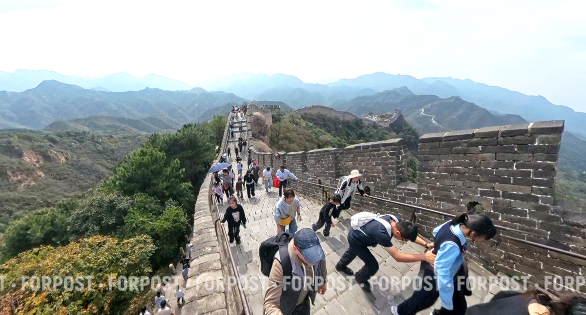 А ещё здесь самые шикарные виды. Те самые, где горы растекаются волнами, а стена тянется, будто змея, убегающая в туман.
