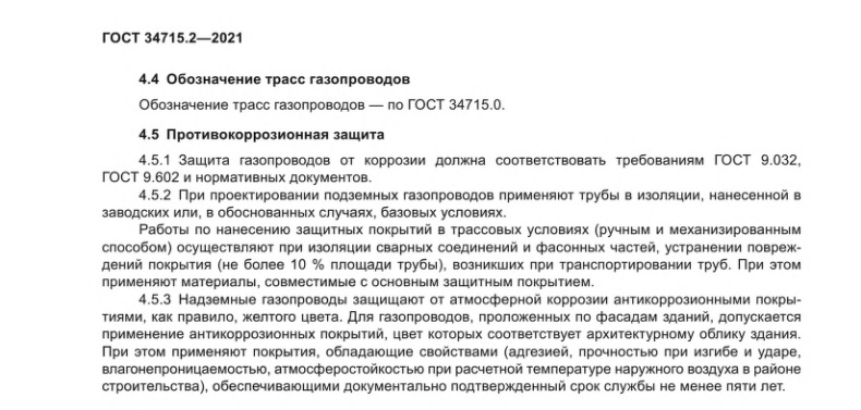 «Однако действовавшим с 1.01.1971 г. по l4.03.2025 года ГОСТ 14202-69 „Трубопроводы промышленных предприятий. Опознавательная окраска, предупреждающие знаки и маркировочные щитки” для трубопроводов, транспортирующих газы горючие и газы негорючие (включая сжиженные газы), была предусмотрена опознавательная окраска жёлтого цвета», — говорится в ответе далее.