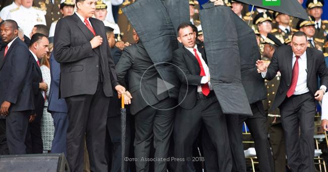После прозвучавшего взрыва Мадуро и окружающие его члены правительства начали напряженно вглядываться в небо. Телохранители загородили венесуэльского лидера раскладными кевларовыми щитами и увели его в безопасное место, передает РИА Новости. Затем послышался звук еще одного взрыва. Сам Николас Мадуро рассказал, что напротив него "взорвался летательный аппарат".