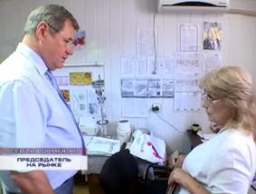 «Вот мы сейчас посмотрели три рынка. Центральный в идеальном состоянии, «Чайка» - рынок, приведенный в порядок к нашему приезду, часть магазинов-ларьков там закрыта была с перепугу. Но потрудились там прилично, привели всё в порядок и цены там, благодаря оптовой торговле в два раза меньше. Ну а вот это вот – то, чего не должно быть вообще. Эти стихийные рынки. Везут, что попало, с земли торгуют мясом. Нужно тут принимать кардинальное решение – переводить этот рынок в другое место, а здесь запрещать торговать»