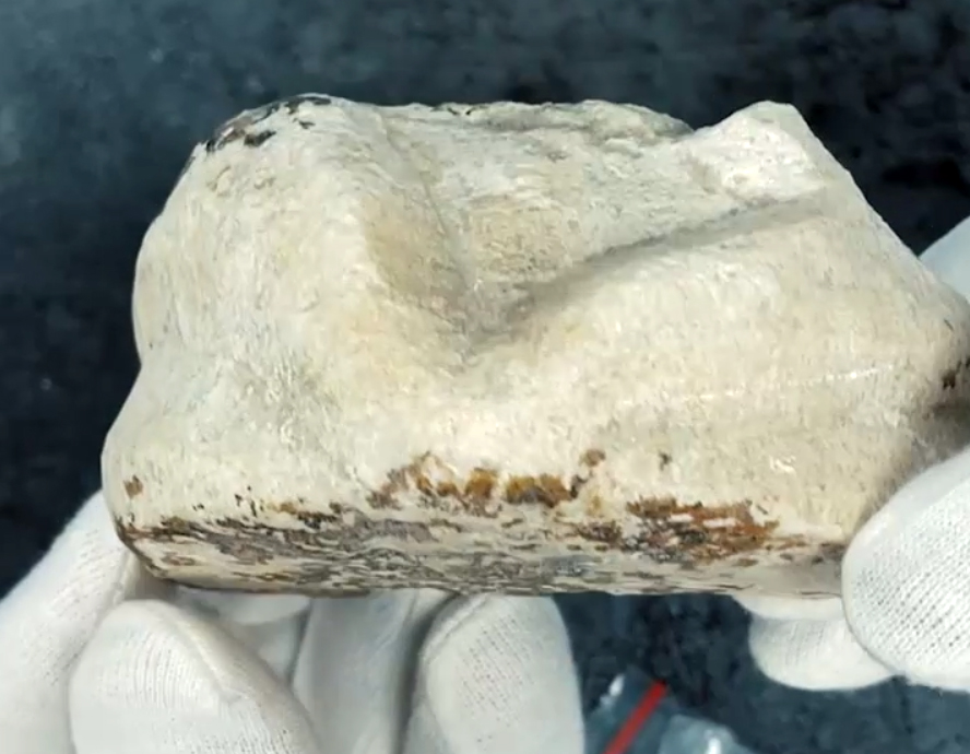 «По всей видимости, основание статуи, как будто подошва. Здесь мы видим остатки резного орнамента, который, возможно, изображает ремни обуви. То есть, возможно, это ступня или пятка какой-то статуи. Мы не знаем, какой, но сама по себе находка намекает на то, что исследования нужно проводить – они могут принести нам очень много интересных находок в будущем», – рассказал об артефакте заведующий отделом «Городище и некрополь» Даниил Костромичёв.