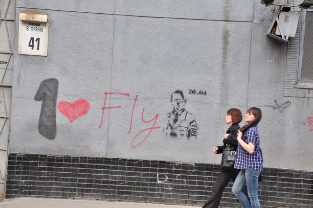 Неизвестные во Львове поздравили Гитлера с 124-м днем рождения.Трафаретное изображение вождя германского национал-социалистического государства появилось в центральной части Львова на перекрестке улиц Ивана Франко и Михаила Грушевского, передает Цензор.НЕТ со ссылкой на Gazeta.ua.