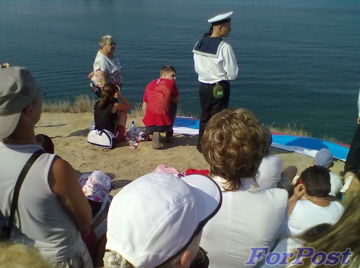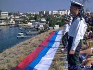 Севастопольцы планировали поднять на Северной стороне во время прохождения катера с президентом РФ В. В. Путиным для осмотра кораблей перед началом Парада пятнадцатиметровый флаг России, но приехавшие на отдых "псевдороссияне", то ли потерявшие русскую самоидентификацию, то ли вообще её не имевшие, по непонятной причине в оскорбительной форме необоснованно наговорили много неприятностей севастопольцам и не давали возможность поднять Российский флаг.