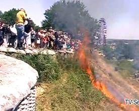 Практически каждый год во время реконструкции на Историческом загорается сухая трава. Так что ничего такого в этом нет. Просто пора бы перед началом мероприятия косить сухую траву и все.