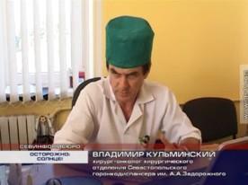 Владимир Кульминский, хирург-онколог хирургического отделения Севастопольского горонкодиспансера им. А.А.Задорожного: «Мы же не можем измерить, сколько вы получите ультрафиолета, к примеру…Но наиболее высокий уровень инсоляции, то есть когда уровень ультрафиолета наиболее высок – это с 10 утра до 16 часов»