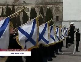 Парадные батальоны различных родов войск построились на плацу. Сначала вносят Знамя Победы, затем звучат приветственные обращения командующих парадом. С российской стороны парадом командует начальник береговых войск Черноморского флота России генерал-майор Александр Остриков. По его словам, в этом году 9 мая на параде Победы в Севастополе впервые за много лет будет представлена боевая техника.