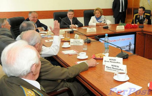 Председатель Совета Федерации Валентина Матвиенко довела до сведения ветеранов, что перед Министерством обороны РФ стоит вопрос о расширении госпиталя ЧФ, вплоть до строительства новых корпусов, что, безусловно, скажется на увеличении койко-мест, пообещала передать Мэру Москвы Сергею Собянину все пожелания ветеранов, касающихся МКДЦ «Дом Москвы» в Севастополе», высказала благодарность участникам Великой Отечественной за их мужество и героизм, за тот бесценный опыт, который они продолжают передавать своим внукам и правнукам.