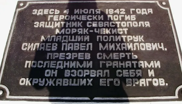 70 лет тому назад, недалеко от 35-й береговой батареи, из огромной колонны советских военнопленных фашистские солдаты выхватили младшего политрука Павла Силаева и повели его в сторону немецкого полевого штаба. Через несколько минут прозвучал взрыв. Чекист, когда его подвели к группе фашистов, привёл в действие спрятанные на теле гранаты…