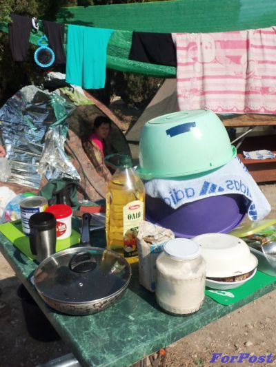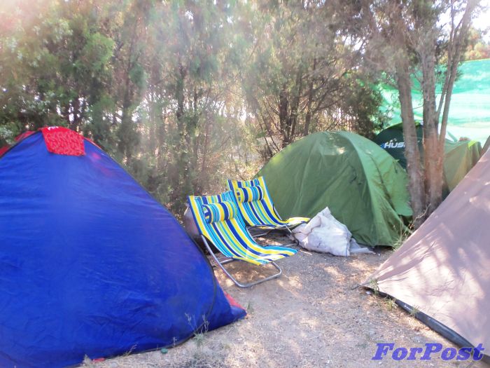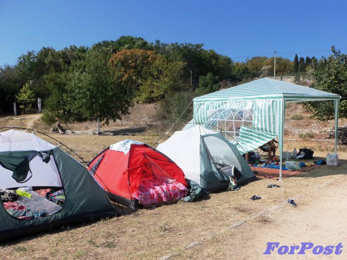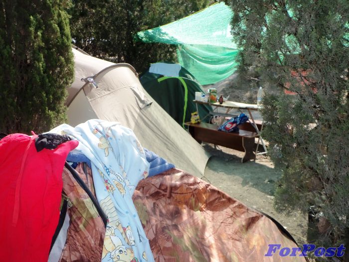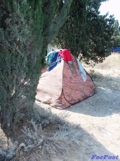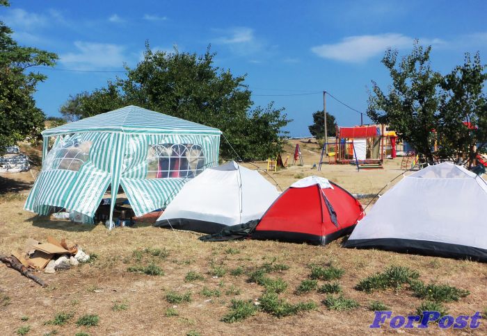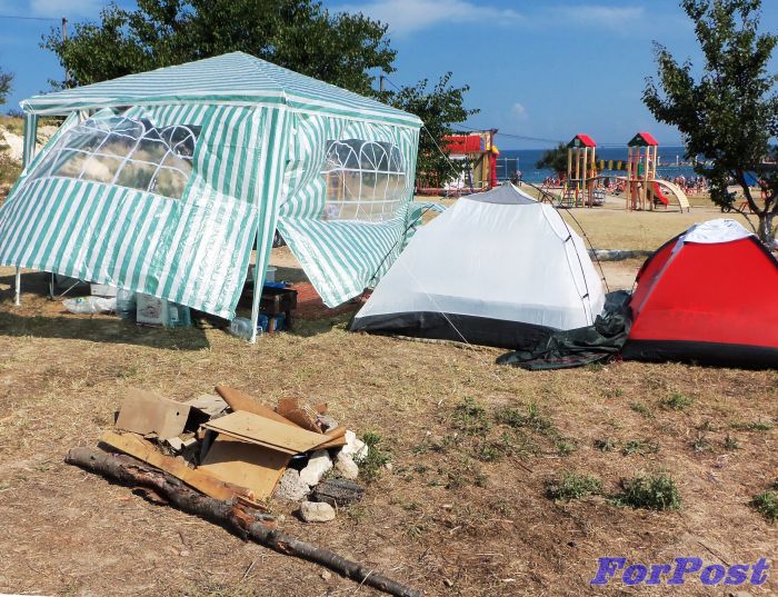– Возле детской площадки коммунального пляже вырос палаточный лагерь