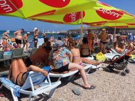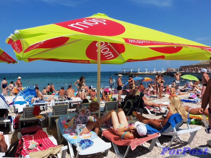 Если в Севастопольской администрации заявляют, что население города достигло миллиона, то добрая его половина сейчас наверняка на морских пляжах. Во всяком случае, на «Солнечном» яблоку негде упасть! Не простаивает аренда лежаков, а часам к десяти вам едва ли посчастливится втиснуться на гальку со своей подстилкой. Все места разобраны ещё с 7 утра.