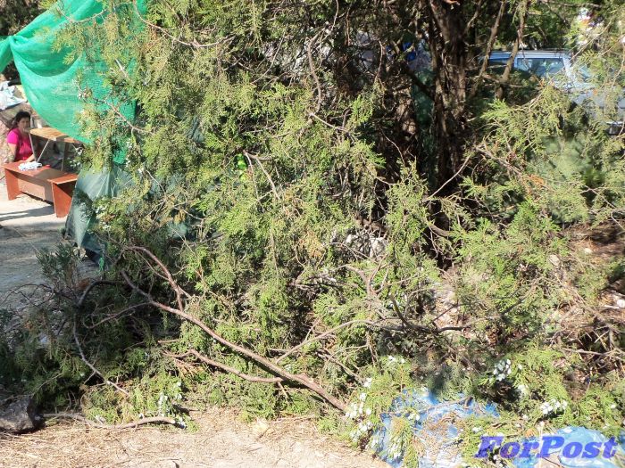 Свежие ветви кипарисов, которые помешали машинам устроиться на постой, безжалостно обрублены! Но они сгодятся для кострища …