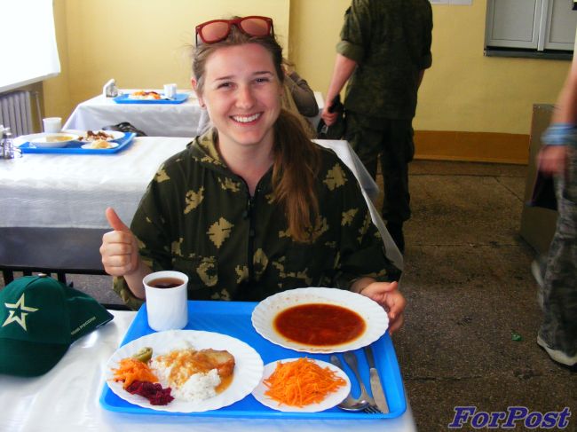 Неделя пролетела незаметно. 35 журналистов быстро освоились. Пережив несколько практических занятий, сплотились в дружный коллектив. Быстро привыкли замирать на плацу при звуках гимна России и строем идти в столовую. Кстати сказать, солдатская кухня вызвала немало восторгов и положительных отзывов. «Я никогда не ел на завтрак пельмени!» - восхищался оператор Итар-Тасс Урал, Виталий Халевин. Испанец Эрик Фонсека - корреспондент Russia Today, утверждал, что подобные булочки он пробовал только у своей бабушки, которая имеет российские корни. Заведующий столовой, Владимир Качалуба рассказал, что нет никаких различий в рационе питания между курсантами «Бастиона» и военнослужащими, проходящими службу в части. Наградой поварам было оглушительное «спасибо», которым журналисты завершали прием пищи. По единодушному решению и курсантов, и организаторов «Бастиона», заведующего столовой наградили специальным дипломом.