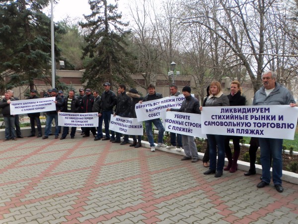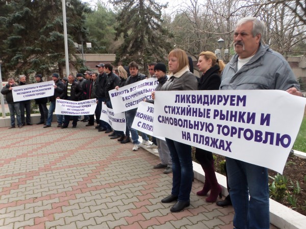 Такова была позиция КП «Благоустройство» на сегодняшнем митинге возле стен здания СГГА. Её озвучил начальник коммерческого отдела КП Николай Александров. Убедительно выглядели и транспаранты в руках сотрудников коммунального предприятия: «Поддерживаем инициативы СГГА по наведению порядка на коммунальных пляжах города», «Уберите с пляжей города шалманы и наливайки, рассадники антисанитарии», «Вернём землю коммунальных пляжей городу» и «Ликвидируем стихийные рынки и самовольную торговлю на пляжах». Действительно, кто же не поддержит такие правильные лозунги?