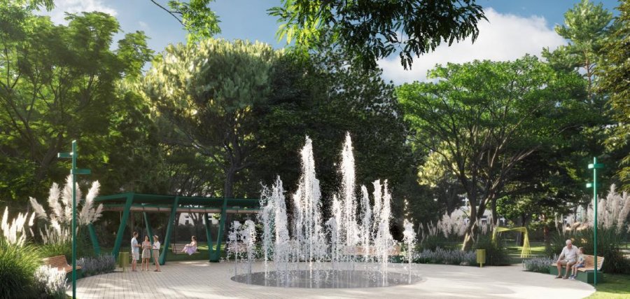 Арочный фонтан заменили на сухой (образцы сухих фонтанов можно наблюдать на пл. Ушакова и в сквере 60-летия СССР), спорную надпись убрали вообще, скамейки снабдили навесами. Изменилась и подсветка: как сообщил представитель «Нового города», в тёмное время суток здесь будет создаваться «эффект сказочного леса». Светодиодной подсветкой будет снабжён и фонтан.
