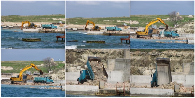 Жители улицы Ефремова, осуществляющие общественный мониторинг строительства, действительно подтвердили, что стройка «молчала» несколько дней. Однако вчера строительство было возобновлено, о чём их известил донёсшийся с моря грохот. На буне №2 вновь появился экскаватор и приступил к вычерпыванию грунта из моря. Вынутый грунт при помощи самосвала перемещался по территории коммунального берега, так и не ставшего «санаторским», после чего высыпался именно на том месте, где ранее и предполагалось устройство нового пляжа санатория.