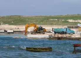 Думаю, наоборот: совершенно успешно разбирают техническую насыпь и заполняют берег между бунами, отвоёвывая у моря вожделенные квадратные метры.