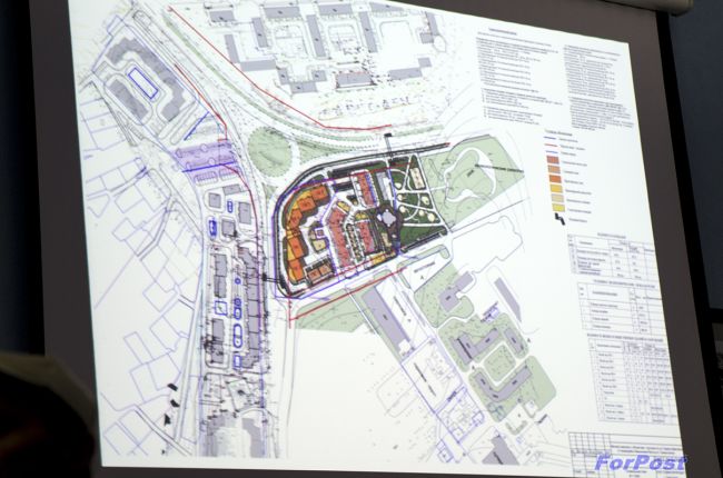 На замечание, что застройщик апеллирует территорией, которая ему не принадлежит, докладчик ответил, что в сложившейся ситуации компания не виновата. Он предложил решить проблему за счёт прилегающей к участку территории сквера, находящегося в заброшенном состоянии, а также за счёт выделенной под строительство часовни земли. Сейчас на этом участке пустырь.