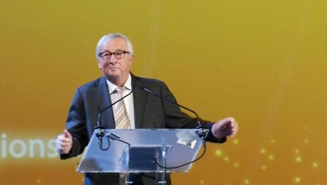 Жан-Клод Юнкер, в свою очередь просто воспользовался заминкой звукорежиссеров, которые не успели вовремя выключить музыку перед началом его речи, чем вызвал в зале аплодисменты, сообщает телеканал "Россия 24".