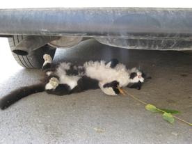 Жарко не только людям, но и животным. Этот снимок я сделал в центре Севастополя, на городском холме. Кот прилег в тенек, под машину…
