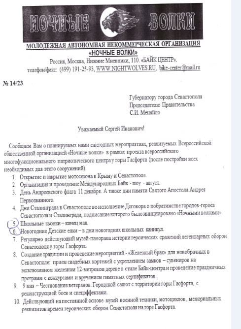 Так ,вам надо очки одеть !!!! Там стоит его фамилия , в отличии от документа направленного в правительство Севастополя . И меня до глубины души !!! возмущает ХАМСКОЕ поведение мотоциклистов , которые ставят себя выше ЗАКОНА и СЕВАСТОПОЛЬЦЕВ !!! разве не понятно , что мы из-за такого поведения восстали против УКРОВ . Получается , что мотоциклисты краев не видят и не представляют , что из себя представляют севастопольцы . Не надо нас ПАТРИОТИЗМУ УЧИТЬ! ,мы сами кого угодно научим!!!