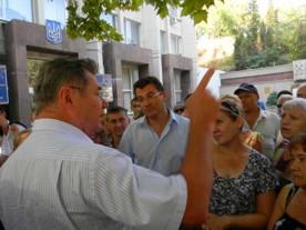 И в тот момент, когда праведный гнев севастопольцев уже готов был обрушится на представителей исполнительной службы, один из общественников увидел вышедшего из машины и направляющегося к зданию администрации председателя СГГА Владимира Яцубу. Не упустив такой шанс «достучаться» до власти протестующие окружили главу города и рассказав о своей проблеме, передали обращение с требованием о запрете строительства, подписанное более 180 жителями микрорайона. Владимир Яцуба сообщил, что им направлен запрос на проведение проверки по данному вопросу в прокуратуру города и заверил, что до окончания проверки строительство не начнется, но подчеркнул, что если с документами все в порядке строить будут.
