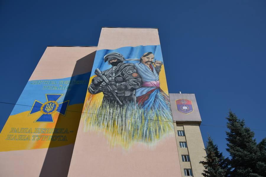 Или вот на здании Национальной академии СБУ в присутствии руководителя спецслужбы Василия Грицака торжественно открыли громадный мурал «На страже безопасности Украины» с изображениями защитников украинского Отчества – козака и воина АТО. Правда, позже выяснилось, что художник изобразил на стене спецназовца ФСБ, образ которого был ранее воссоздан российско-белорусской командой по страйкболу РОСН. Этот эффектный портрет изображен на обложке демо-журнала AIRSOFTMAG, откуда его бесцеремонно и скопировали. Ни дня без зрады!