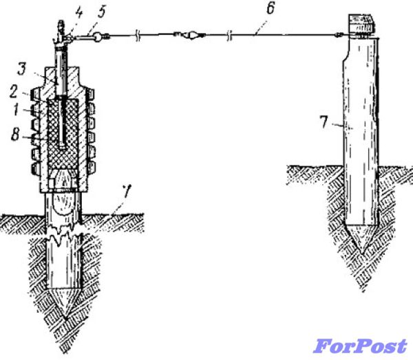 Мина ПОМЗ-2 и взрыватель МУВ в разрезе