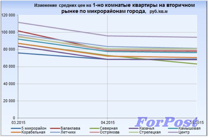 Отчет необъективный, в виду того, что вся недвижка в Севастополе да и в России была привязана к $, и поскольку в апреле-мае прошло понижение курса рубля к $, отсюда и возникло кажущееся падение стоимости кв.м Если эти графики сделать в $, то мы будем наблюдать более интересную динамику.