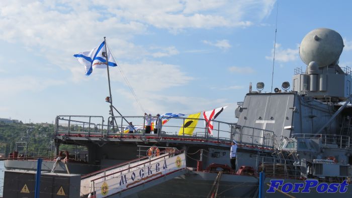 А как красиво развевается Андреевский флаг на ГРКР "Москва", как чеканят шаг черноморцы!!!