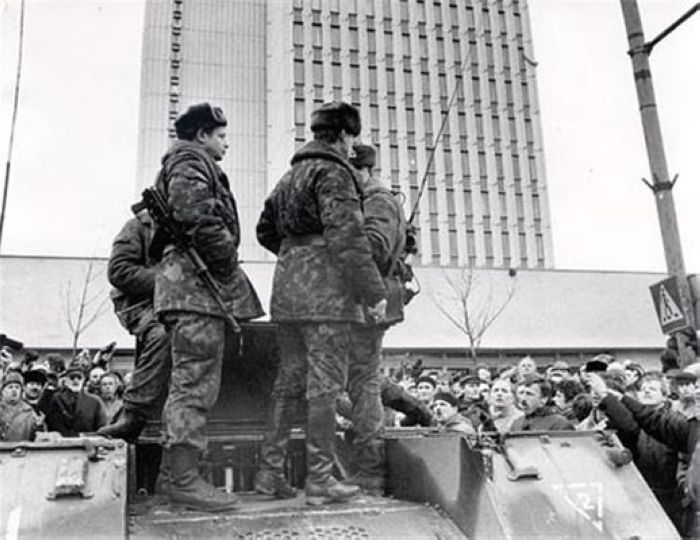 Напомню молодым людям, что в марте 1990 г. Литва объявила о восстановлении независимости республики, на территории страны было прекращено действие Конституции СССР. Однако союзные власти этой независимости не признали. С начала следующего года по Литве прокатились акции протеста, был захвачен вильнюсский телецентр и 13 января колонна советской бронетехники направились в центр Вильнюса, чтобы блокировать телецентр и дать возможность группе «Альфа» без лишних жертв очистить его от захватчиков. В результате столкновений между военными и активистами у телецентра оказались погибшие и раненые.