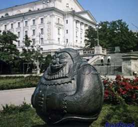Как-то Борис Васильевич посетил одну из соцстран. Там его поразила идеальная чистота на улицах. Он обратил внимание на то, что урны в городах этой страны имели вид различных весёлых зверюшек, к тому же ...говорящих: бросаешь в неё бумажку, а она тебе в ответ "спасибо". И загорелся Черничкин идеей сделать такие же в Севастополе. Мало ему было чистоты на улицах города в те годы. Хотел, что б было ещё чище, и приучать к аккуратности с младых ногтей он старался любым способом. Заказ дал, естественно, своему любимому художнику, отстранённому от дел, а у того сразу фантазия разыгралась. Соорудил он из железобетона разных весёлых зверей, оформил скульптуры интересными аксессуарами, только вот никак не удавалось найти специалистов, способных наладить звуковое сопровождение. Пока их искали, Яковлев сделал урну в виде круглого толстого человечка. И уже не бетонную, а медную, с изысканной чеканкой: