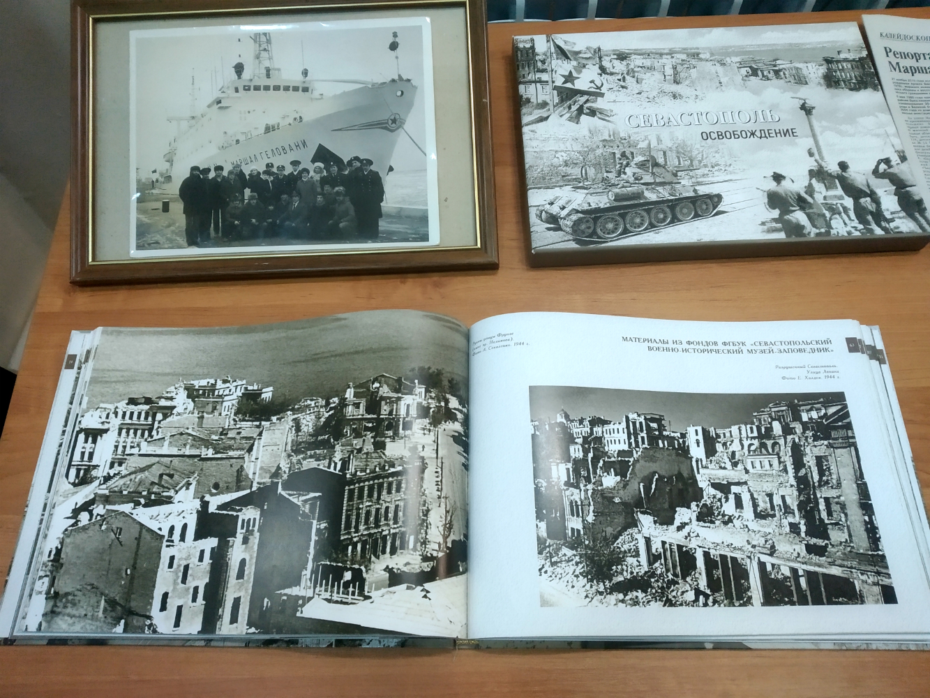 Среди документов — приказ командующего Черноморским Флотом о награждении Геловани орденом Красной Звезды (первая его награда, 1942 год). Специально для выставки Центральный архив Министерства обороны РФ предоставил приказ, подписанный полковником Геловани в 1953 году. В нём Арчил Викторович поздравляет военных строителей с годовщиной Великой Октябрьской социалистической революции.