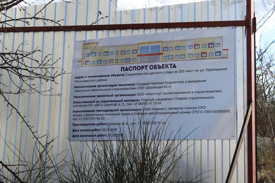 В Нахимовском районе на улице Горпищенко началось строительство нового дошкольного учреждения с благоустроенной современной инфраструктурой. Детский сад рассчитан на 220 мест — для детей в возрасте от 1,5 до 7 лет,