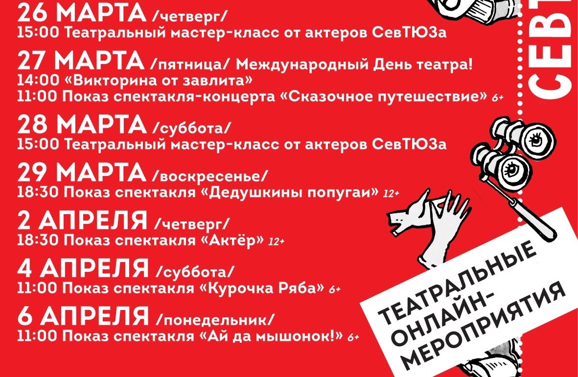 В официальном паблике СевТЮЗа в соцсети «ВКонтакте» можете посмотреть видеозаписи детских постановок. Ссылки будут появляться в группе согласно расписанию.