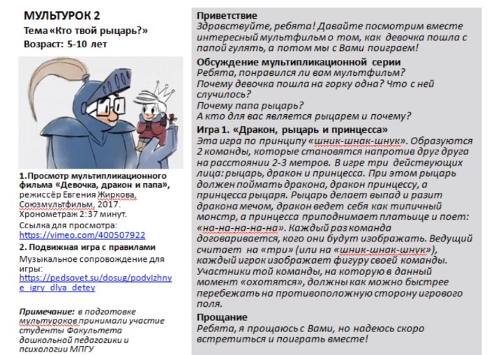 Тема «Кто твой рыцарь?». Возраст 5-10 лет.