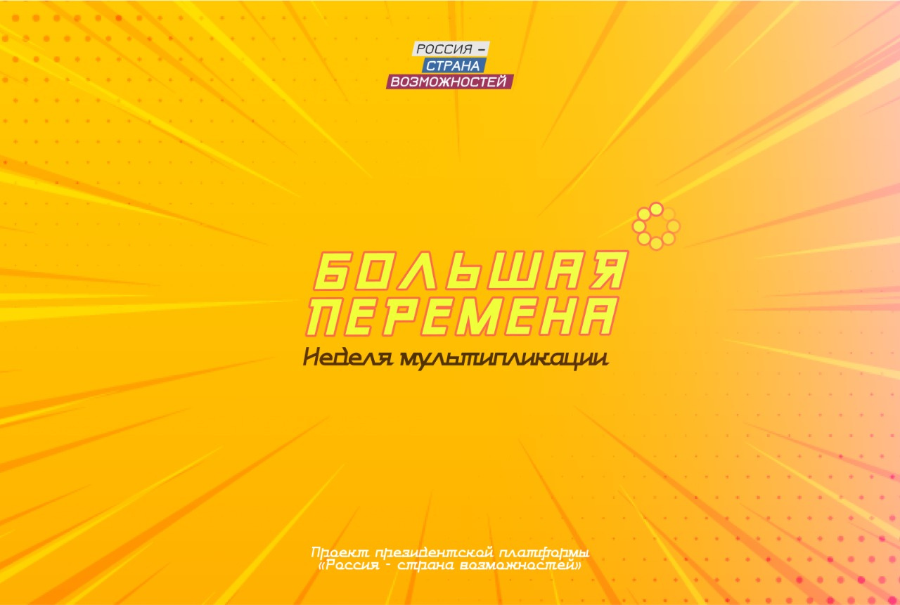 В сообществе Всероссийского конкурса для школьников «Большая перемена» в соцсети «ВКонтакте» стартовала новая тематическая неделя, посвящённая анимации и российским мультфильмам. В течение недели школьники смогут узнать, как создаются мультфильмы, посетят виртуальные экскурсии по киностудиям, встретятся с создателями анимационного кино, режиссёрами киностудий «Союзмультфильм» и «Мельница». Кроме того, участники конкурса смогут сами стать авторами мультфильмов.