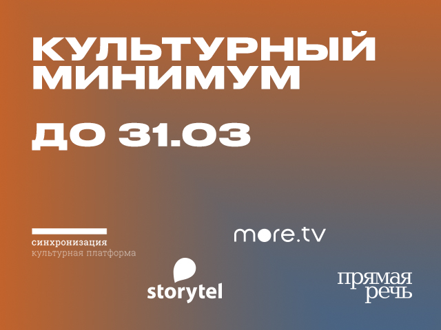 На популярных российских онлайн-сервисах стартовала акция «Культурный минимум». Ее основная цель — сделать востребованные современные форматы онлайн-образования и досуга более доступными для людей разных возрастов и интересов. В этом году среди официальных партнеров события: сервис электронных и аудиокниг Storytel Russia, лекторий «Прямая речь», культурная платформа «Синхронизация», онлайн-кинотеатр more.tv.
