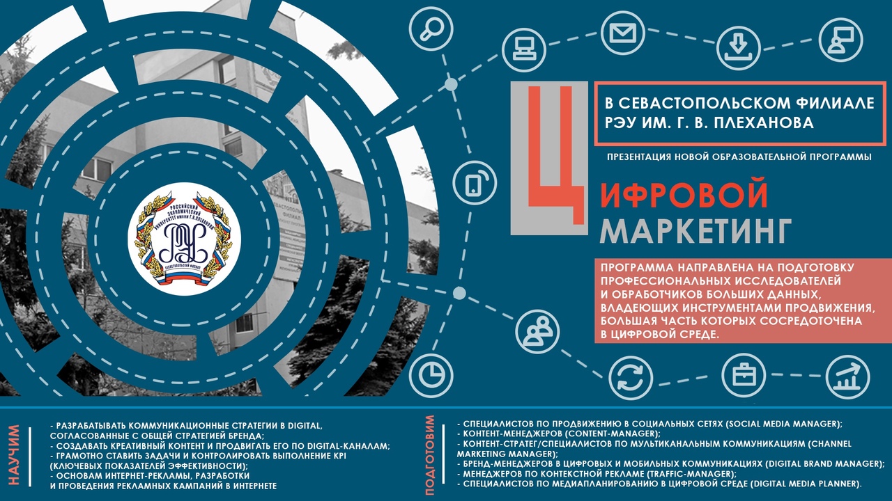 Севастопольский филиал РЭУ им. Г.В. Плеханова открывает новый профиль направления «Менеджмент» – «Цифровой маркетинг». Это современная программа высшего образования, нацеленная на подготовку профессиональных исследователей и обработчиков больших данных, владеющих инструментами продвижения, большая часть которых сосредоточена в цифровой среде.