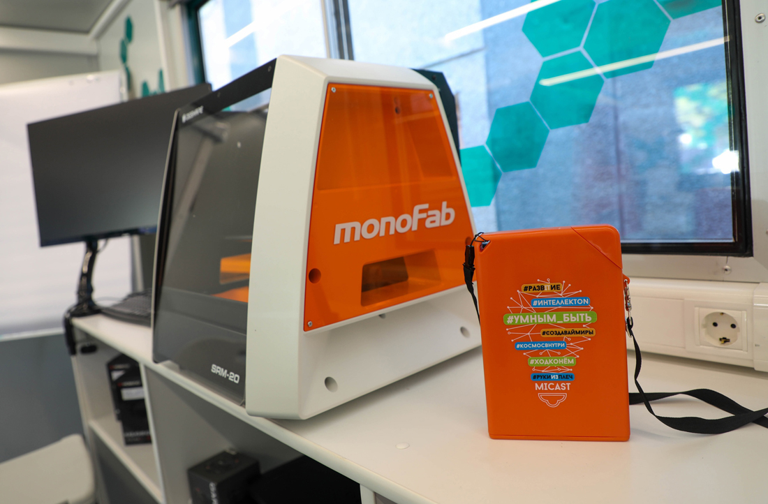 Мобильный «Кванториум» – детский «технопарк на колесах», внутри которого обустроен многофункциональный комплекс для проведения опытов, моделирования и конструирования. Здесь есть устройства для работы в дополненной и виртуальной реальности, 3D-принтеры, лазерный гравер, сборочная и паяльная зона.