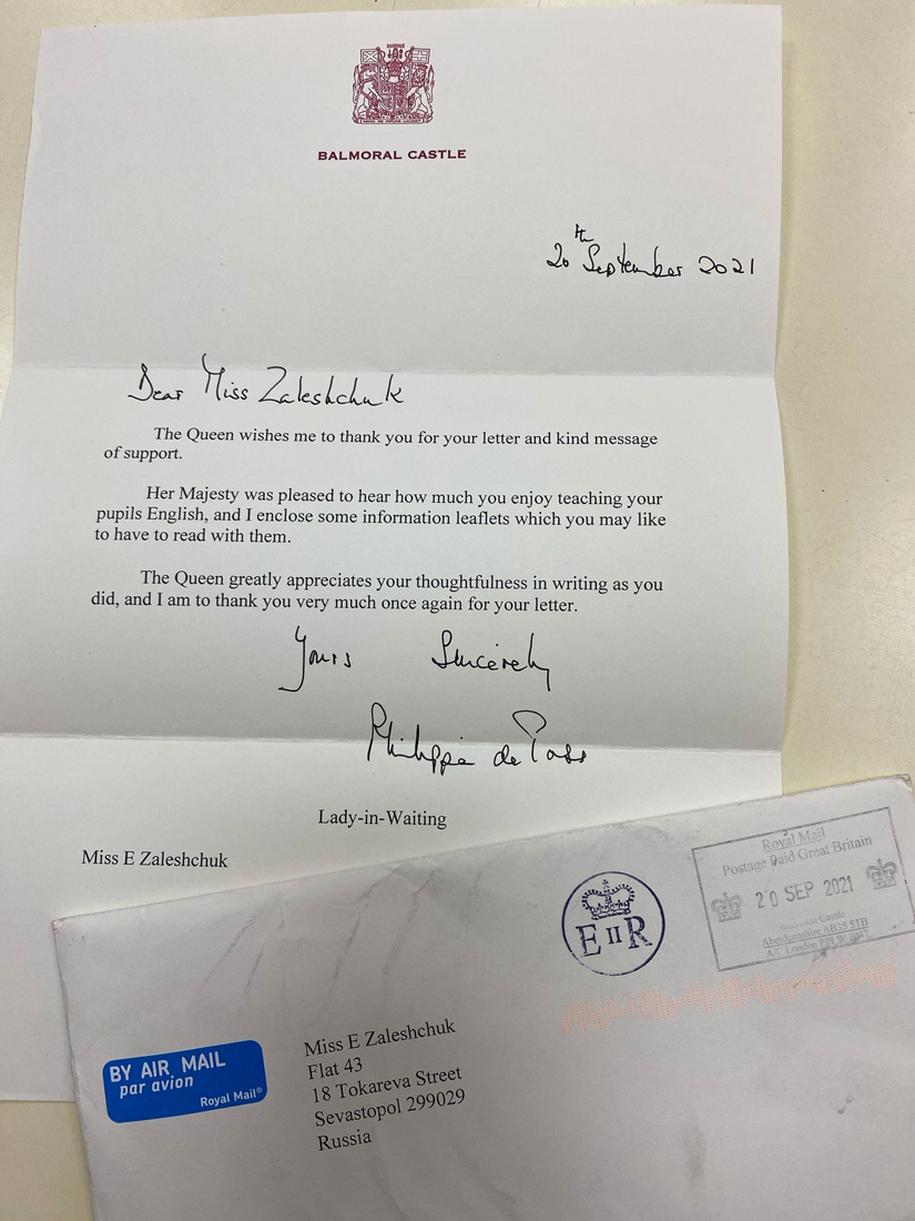 В письме говорится, что Её Величеству было приятно получить тёплые слова поддержки и узнать, с каким удовольствием севастопольский педагог учит своих воспитанников английскому языку.
