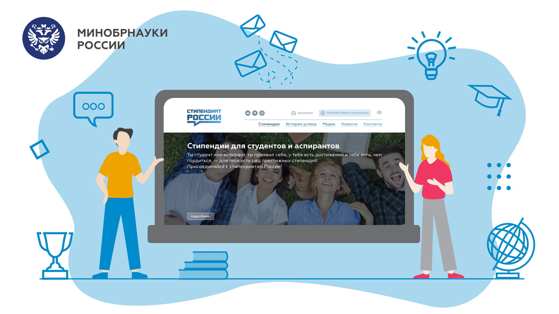 СтипендиатРоссии.РФ — официальный сайт Минобрнауки России, который недавно создан для информирования студентов/аспирантов о государственных стипендиях, а также для работы на нём представителей вузов.