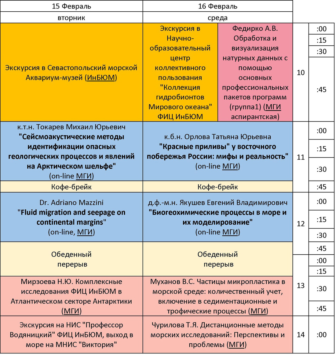 Севастопольскую площадку научной школы Плавучего университета представляют два Федеральных исследовательских центра — Морской гидрофизический институт РАН и Институт биологии южных морей им. А.О. Ковалевского РАН. Научная школа будет работать до 16 февраля, в очном и дистанционном форматах.