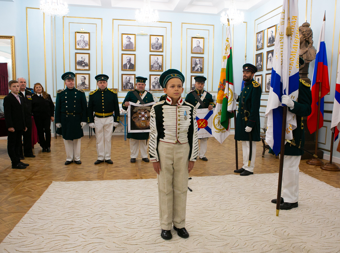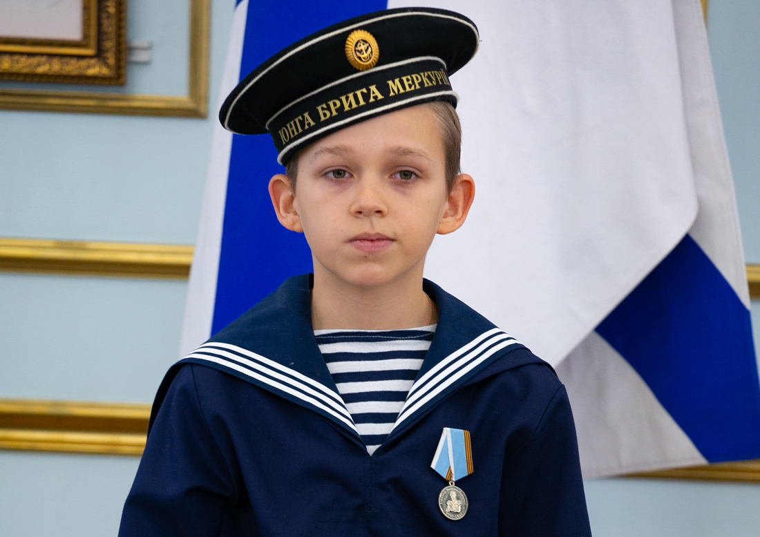 За успешную службу в 32-м флотском экипаже в торжественной обстановке школьнику вручили бескозырку и специально разработанную для юнги форму. Трое ребят получили звание кандидатов в юнги, а Марк официально стал первым юнгой флотского экипажа.