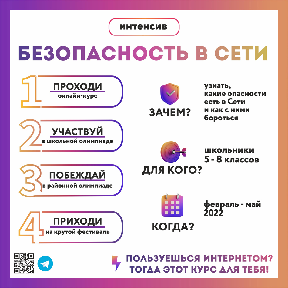 Команда «IT-куб. Нот» разработала бесплатный онлайн-интенсив «Безопасность в Сети». Школьники узнают о том, какие опасности есть в сети, а главное — как защитить себя и своих близких от киберугроз. Программа состоит из четырёх модулей и предназначена для школьников 5-8 классов.