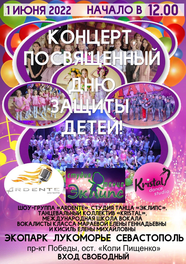 1 июня в 17-00 на сцене перед ГБОУ ДО «ДДЮТ» состоится отчётный концерт детских художественных коллективов Дворца. Приглашаются учащихся школ и учреждений дополнительного образования Севастополя, педагоги и родители, гости города.