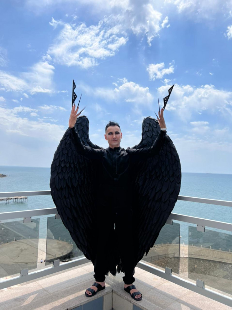 «Когда нам прислали регламент конкурса, оказалось, что модель и участник должны быть от 18 и старше. Для Арулата сделали исключение, а по модели требования остались. Времени на поиски у нас не было. В итоге всей семьей уговорили папу. Супруг очень переживал, как это всё будет, сможет ли он преподнести задуманный образ, но чтобы поддержать сына, согласился. И Арулат решил всё переиграть — изменить дизайн и сделать его чёрным ангелом. Образ прорабатывал сам, начиная от одежды, причёски до грима и ногтей», — рассказала Сания Рахимова.